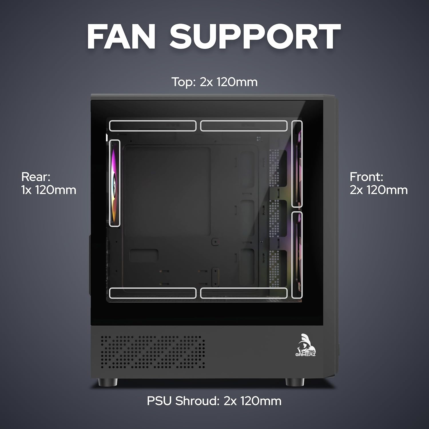 | Max Fan Support | 8 fan support (3 pre-installed 120mm ARGB fans) |