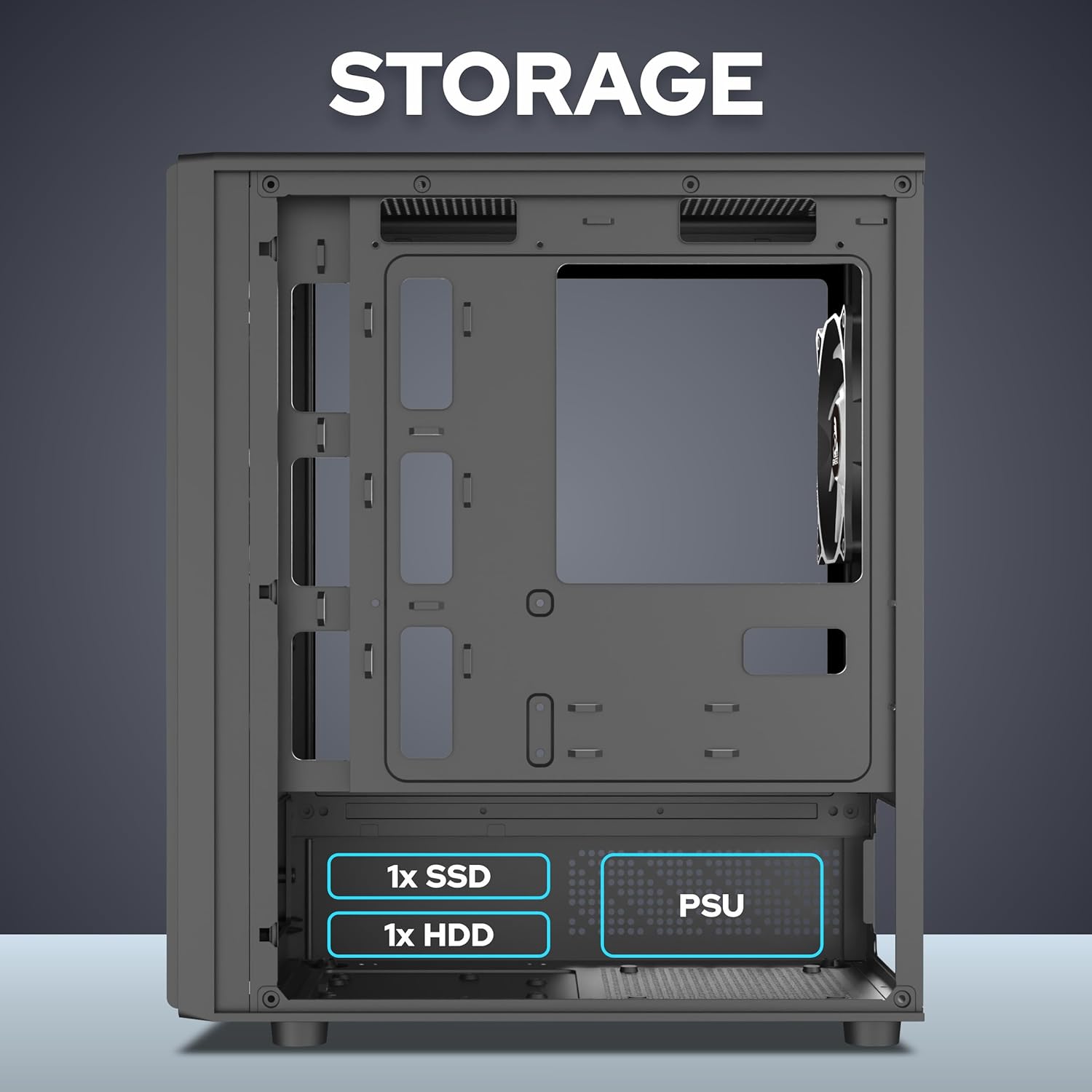 | – Rear & bottom | 1 x 120mm (pre-installed) + PSU shroud 2 x 120mm |